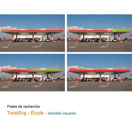 Projet d'identité visuelle d'une joint venture créée par deux entreprises : Total et Erg en Italie.